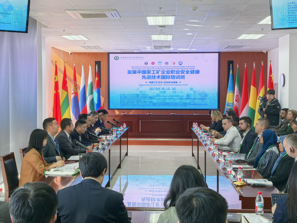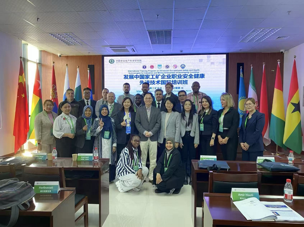 由中华人民共和国科学技术部国际合作司主办,中国安全生产科学研究院承办,中国矿业大学等6所高校协办的“发展中国家工矿企业职业安全健康先进技术国际培训班”于2025年10月12日-26日在中国安科院密云安科基地举行。培训面向“一带一路”沿线发展中国家的政府、企业、高校等职业安全健康管理和专业技术人员,共有来自加纳、几内亚、印度尼西亚、伊朗、哈萨克斯坦、蒙古国巴基斯坦、俄罗斯、塞尔维亚、多哥等10个国家的20名管理和专业技术人员参与。