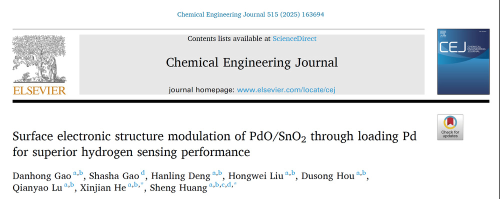 近日,中国矿业大学职业健康研究院澳门大学等单位开展联合研究,在危险气体检测领域取得重要进展。成果以论文Surface electronic structure modulation of PdO/SnO2 through loading Pd for superior hydrogen sensing performance”形式发表于化工领域顶刊Chemical Engineering Journal中科院一区TOP、IF=13.2该研究在我院何新建教授、黄胜副教授共同指导下完成,第一作者为我校安全22级博士研究生高丹红。